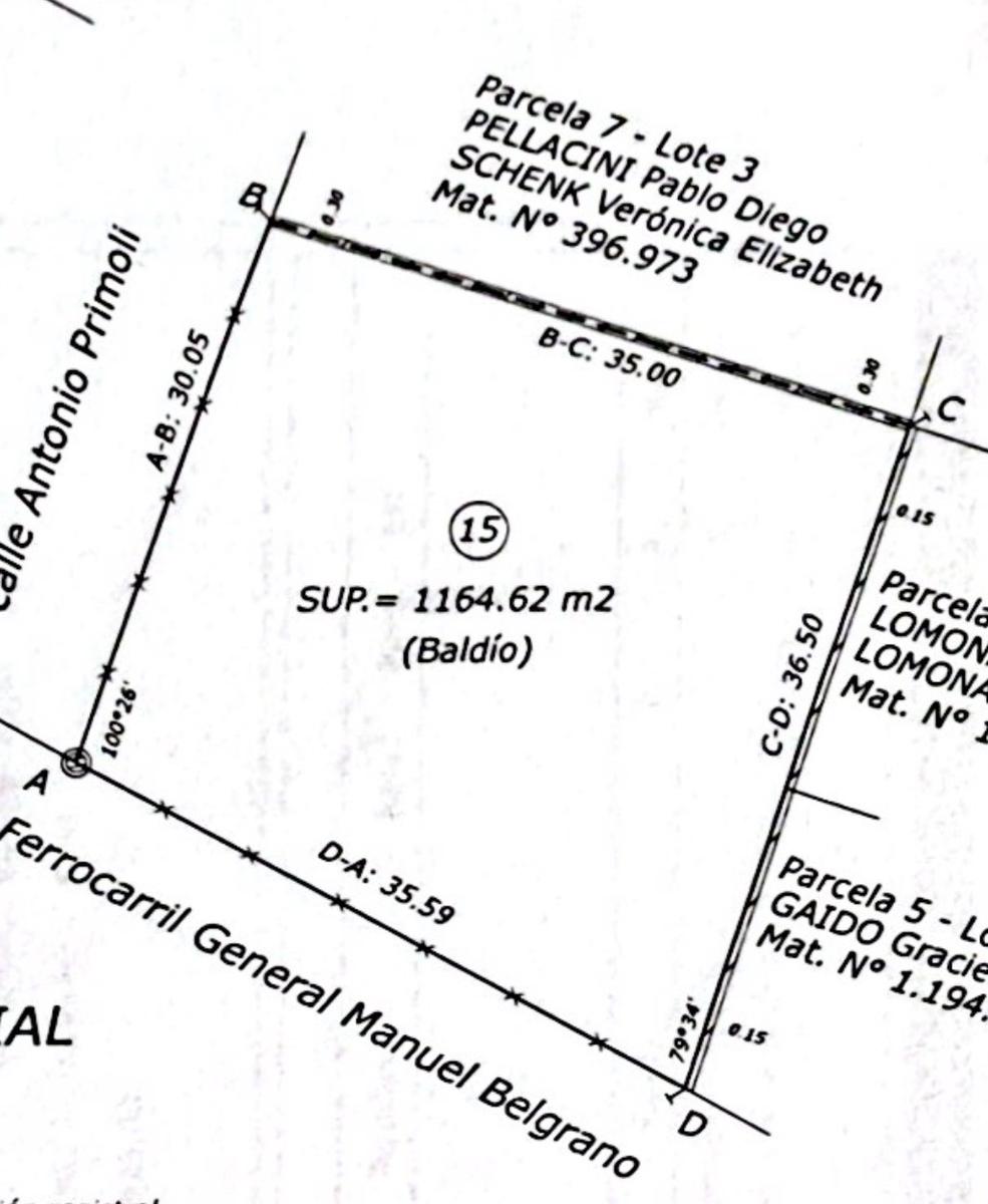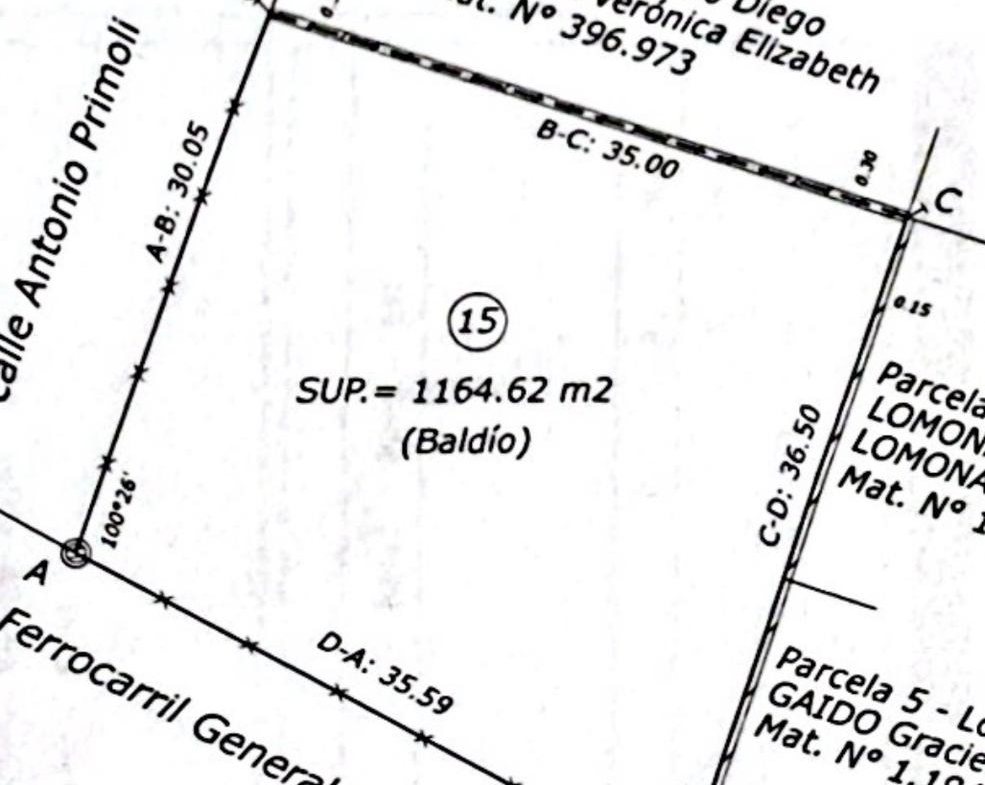 Terreno de 1.164 m² en zona F1, ubicado sobre Antonio Primoli, frente al CPC Argüello.